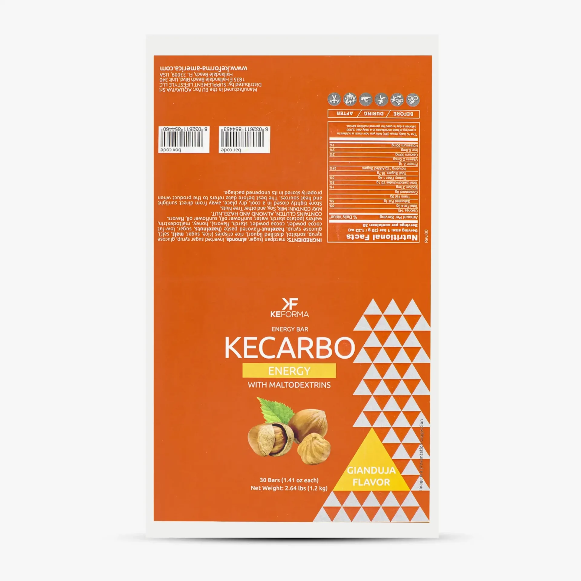 KE CARBO is a high-digestibility energy bar with almond paste and maltodextrins, offering quick, sustained energy for athletes during intense activities.