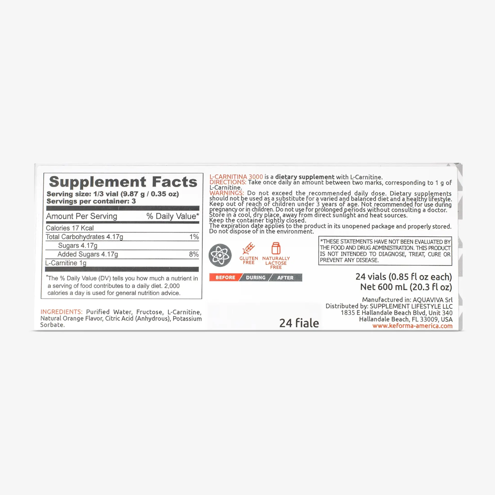 Over 33,000 mg of pure L-Carnitine per vial with excellent bioavailability and a refreshing Red Orange flavor.