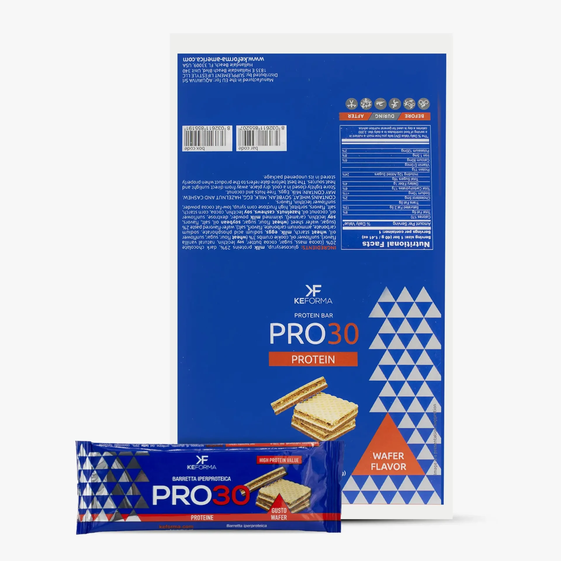 PRO30 is a high-protein food bar, perfect for technical snacks or to curb hunger throughout the day. Formulated with high biological value proteins derived from milk and soy, PRO30 offers a unique combination of rich taste and soft texture. Free from hydrogenated fats and palm oil, it provides 27% protein along with dietary fiber, making it an excellent choice for athletes and active individuals seeking quality nutrition between meals or post-workout.
