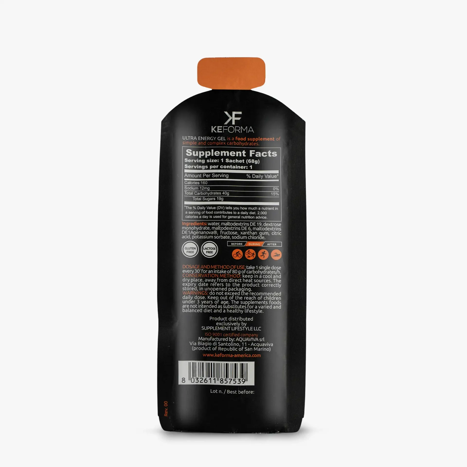 ULTRA ENERGY GEL: Dietary supplement with a mix of simple and complex carbohydrates. Maltodextrins with a balanced DE1-DE6-DE19 profile and xanthan gum. Mix of 3 maltodextrins with different polymerization levels, providing a balanced and prolonged energy release essential for supporting endurance activities. Branched maltodextrins Agenanova® mark a turning point in energy supply, balancing time release and constant replenishment of muscle stores.