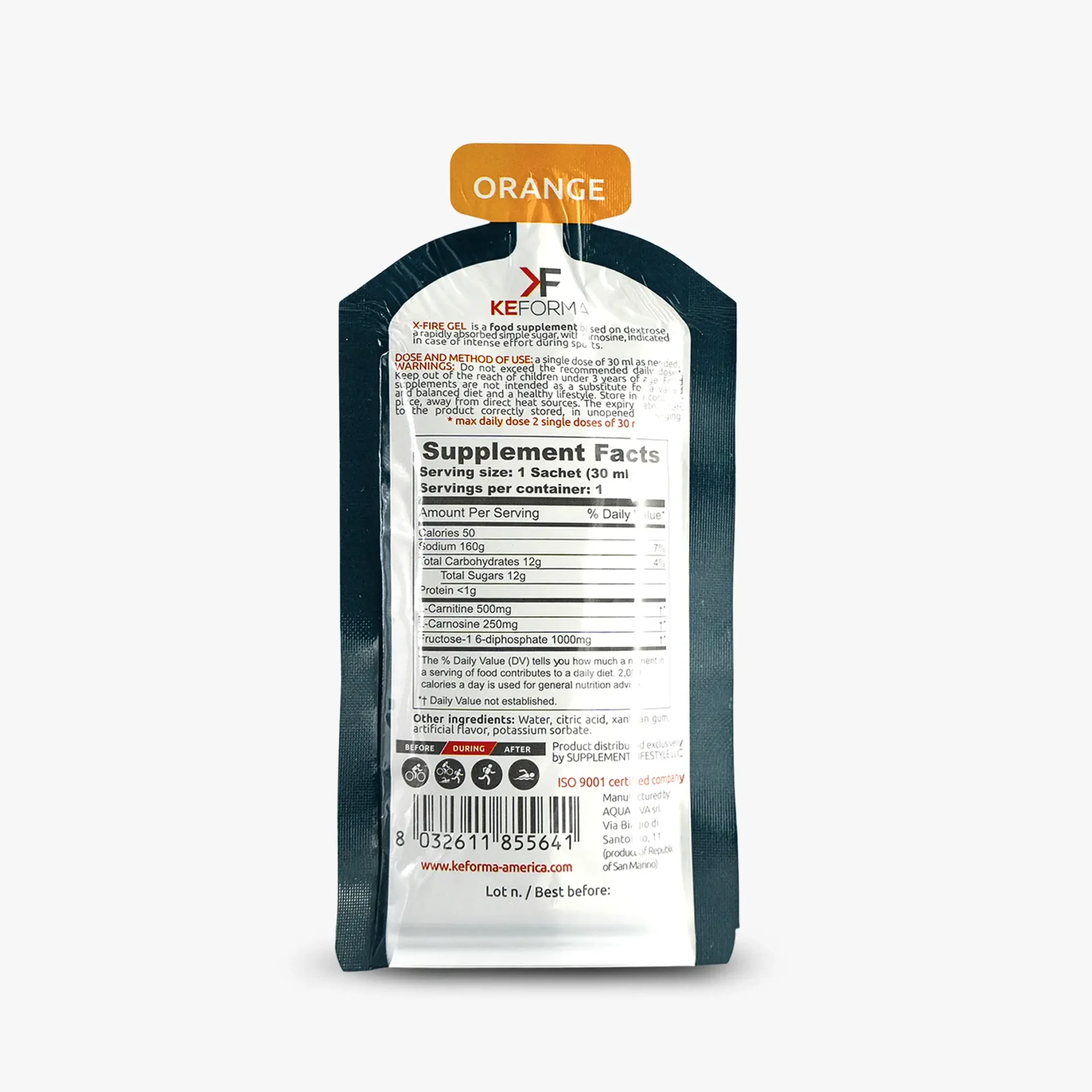 Water, dextrose 36%, fructose 1-6 diphosphate sodium salt, L-carnitine, acidifier: citric acid, L-carnosine, thickener: xanthan gum, flavor, preservative: potassium sorbate.